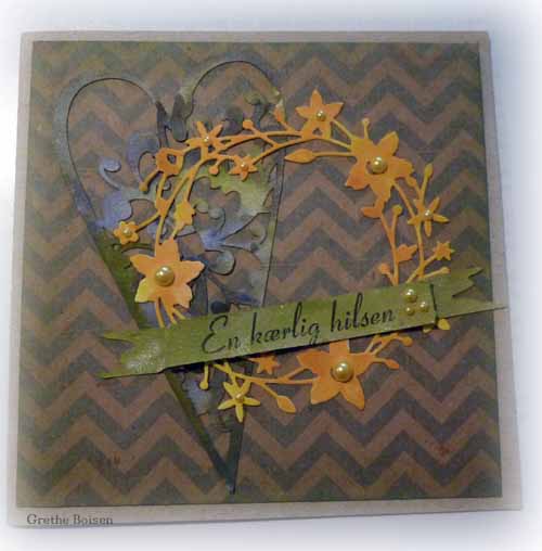 For kort tid siden var jeg heldig at vinde forskellige udskæringer, og det blev jeg rigtig glad for. Der var kun et par stykker hvor jeg selv og havde die`s der var brugt, så det var bare helt super. På det første kort har jeg brugt lidt farver på udskæringerne, og sat dem på noget papir med chevron mønster.